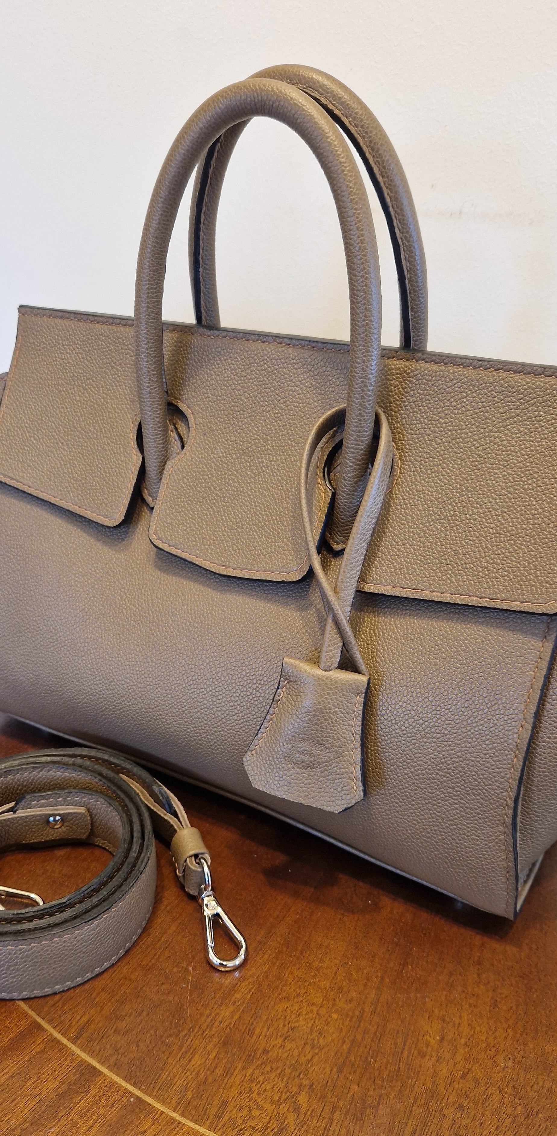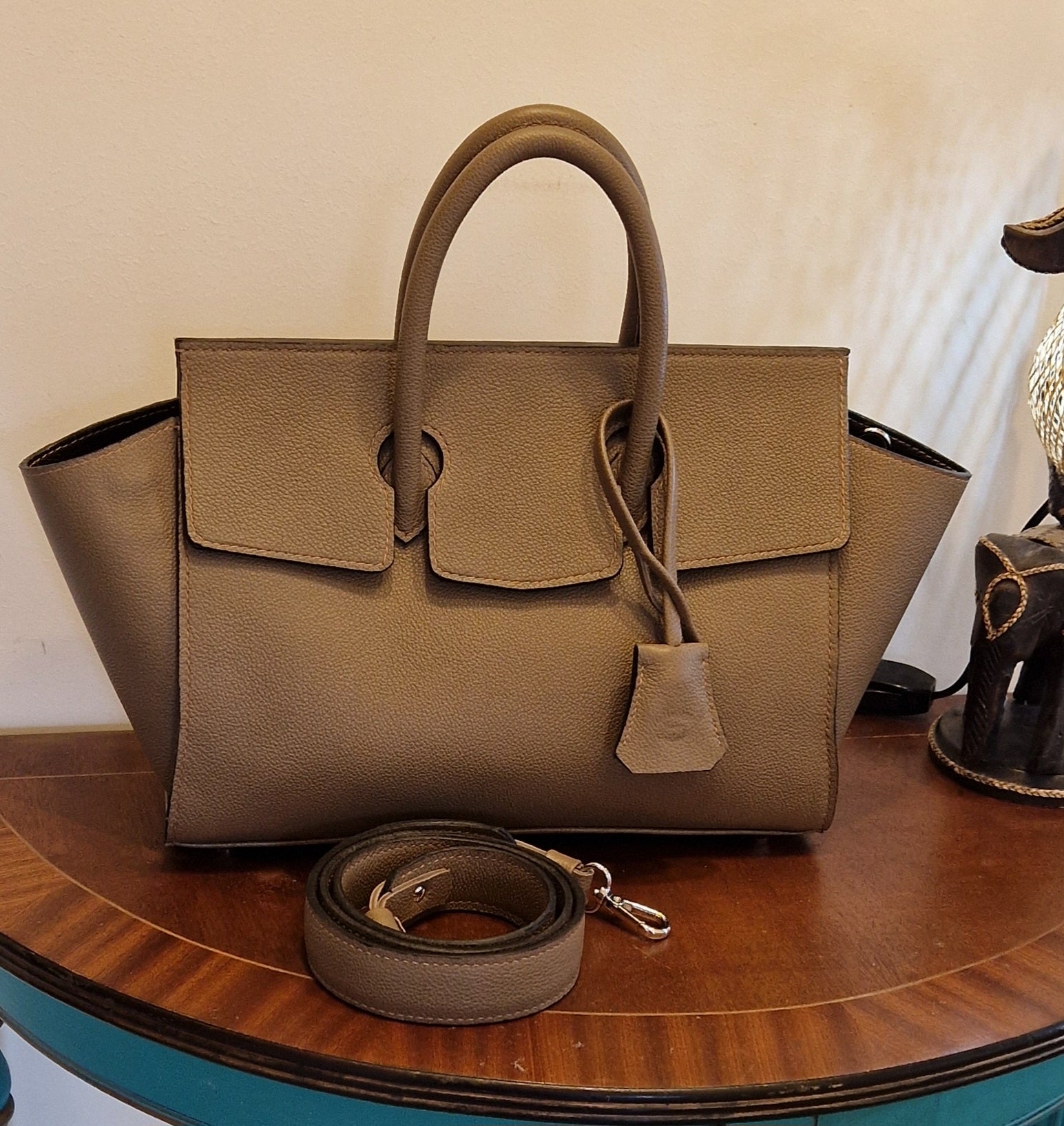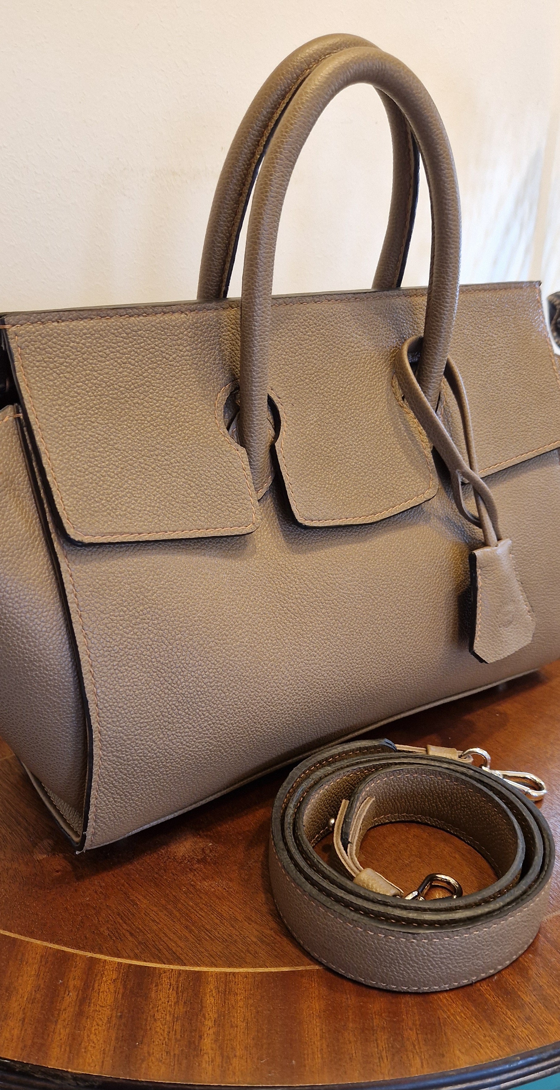 This stunning handmade, hand-stitched luxury Dream Bag 30 was crafted in our family-run Northampton studio. It features a warm taupe full-grain leather with a matte finish. Out of our Dream Bag Collection, this Dream 30 bag is the largest one out of three pieces.