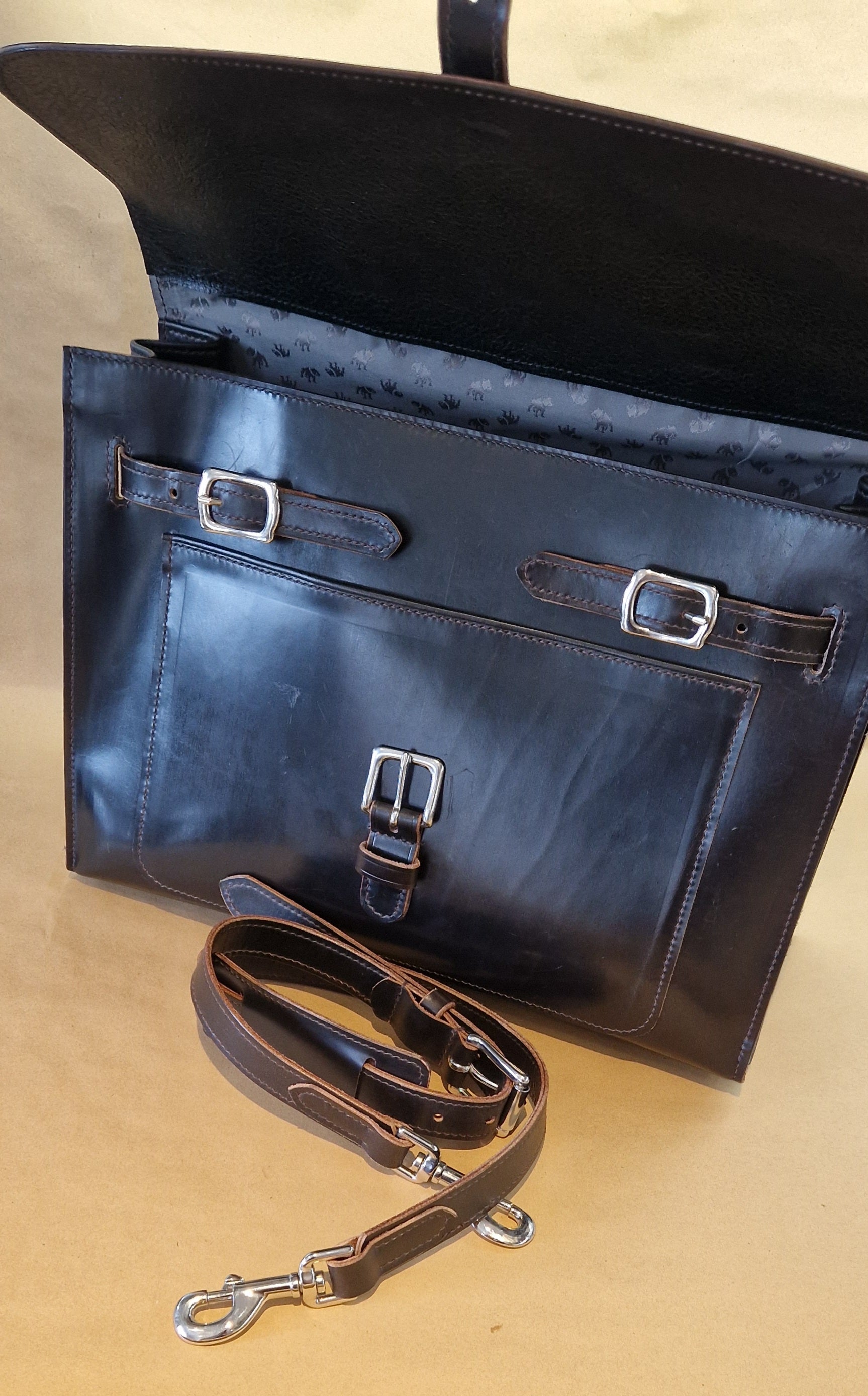 - Handcrafted in premium English bridle leather, this men's messenger bag combines timeless style with everyday functionality.